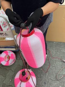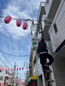 昨年に引き続き、小岩家電が提灯の取付けをしております。