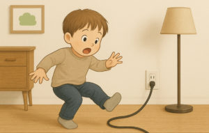コンセントを使用中に、お子さまがコードにつまずいてヒヤッとしたこと…。